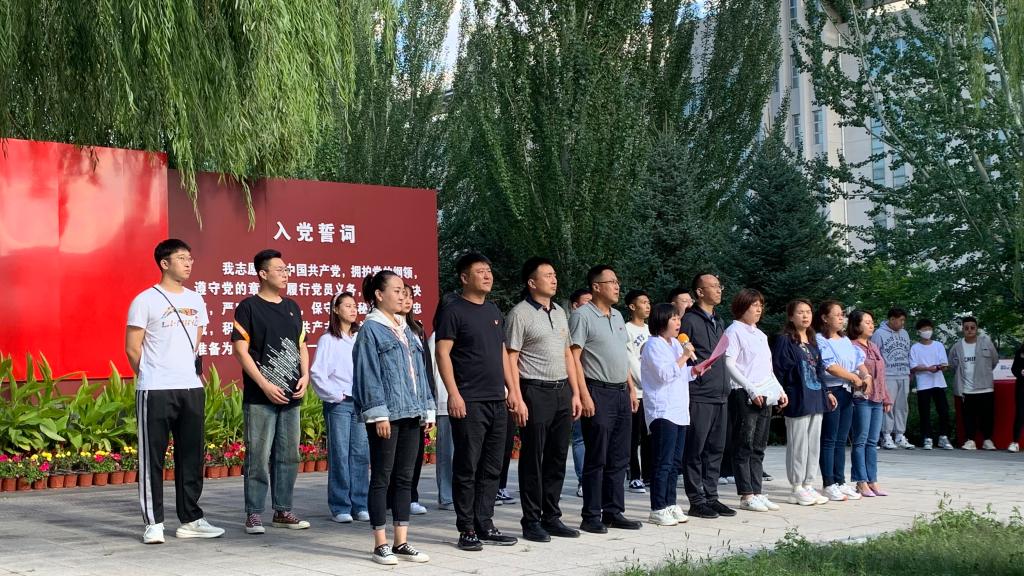 第二项:全体党员重温入党誓词,请所有党员面向党旗庄严宣誓,领誓人:院党总支书记宝玉同志。