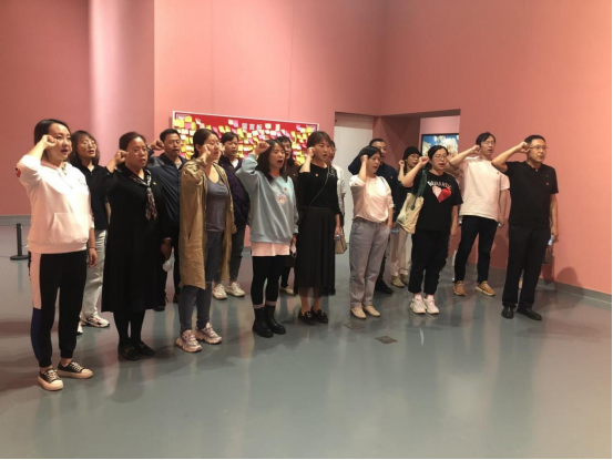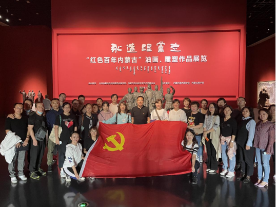 为重温峥嵘岁月,赓续红色血脉,确保理论学习入心入脑,使政治学习和业务工作更好地结合,由艺术设计学院党总支建筑装饰党支部组织开展的主题党日活动,于2021年9月16日在内蒙古美术馆以学习参观“永远跟党走——红色百年内蒙古”油画、雕塑作品展的形式开展。活动以现场教学的方式,再忆红色岁月,传承革命精神。学院全体党员和部分非党员教师参加了此次活动,活动由建筑装饰党支部组织委员曹雅娴同志主持,支部宣传委员白雪同志进行现场党课的讲授。