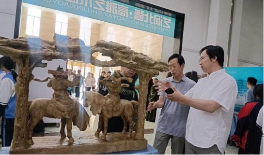 2024年6月15日,我校中华优秀传统文化传承基地两位工艺美术大师携皮艺和雕塑作品,参加由巴彦淖尔市教育局和临河区第一职业中等专业学校联合主办的“艺润北疆非遗文化、高雅艺术进校园——大师皮艺、雕塑作品展演”活动。